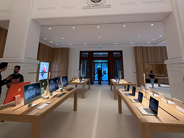 Apple opened their premier flagship store on the 27th June 2025 at 1 Forest Place. The store’s refurbishment took nearly 9 months in this state heritage building. Occupying a premier location in the heart of Murray Street mall.